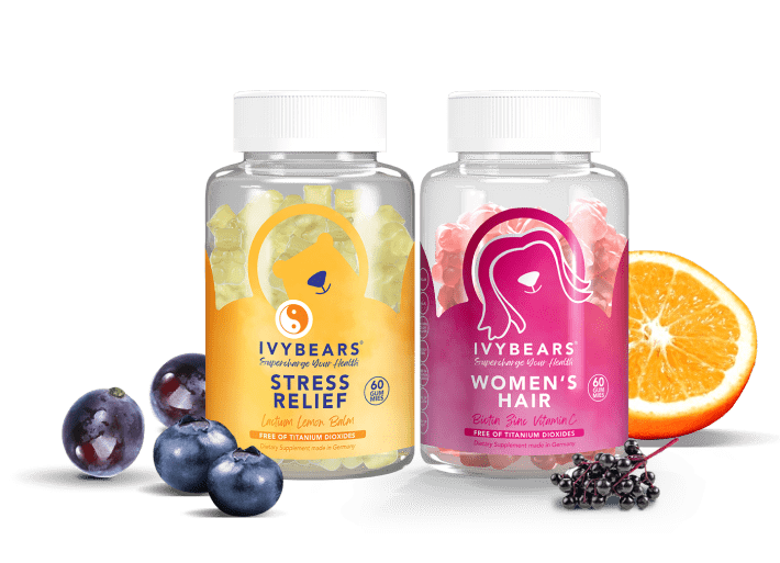 Fruity gummy bears that make our hair shiny or our skin even more radiant? They exist! There are a lot of vitamins and nutrients in the sweet and tasty bears from 𝗜𝗩𝗬𝗕𝗘𝗔𝗥𝗦 ®. With regular use, 𝗜𝗩𝗬𝗕𝗘𝗔𝗥𝗦 ® vitamin bears make your hair more voluminous and your complexion more radiant. In addition, the high-dose vitamin complexes are now also vegan*, gluten-free, contain no artificial flavors, are free of titanium dioxide – and of course 100% Made in Germany.